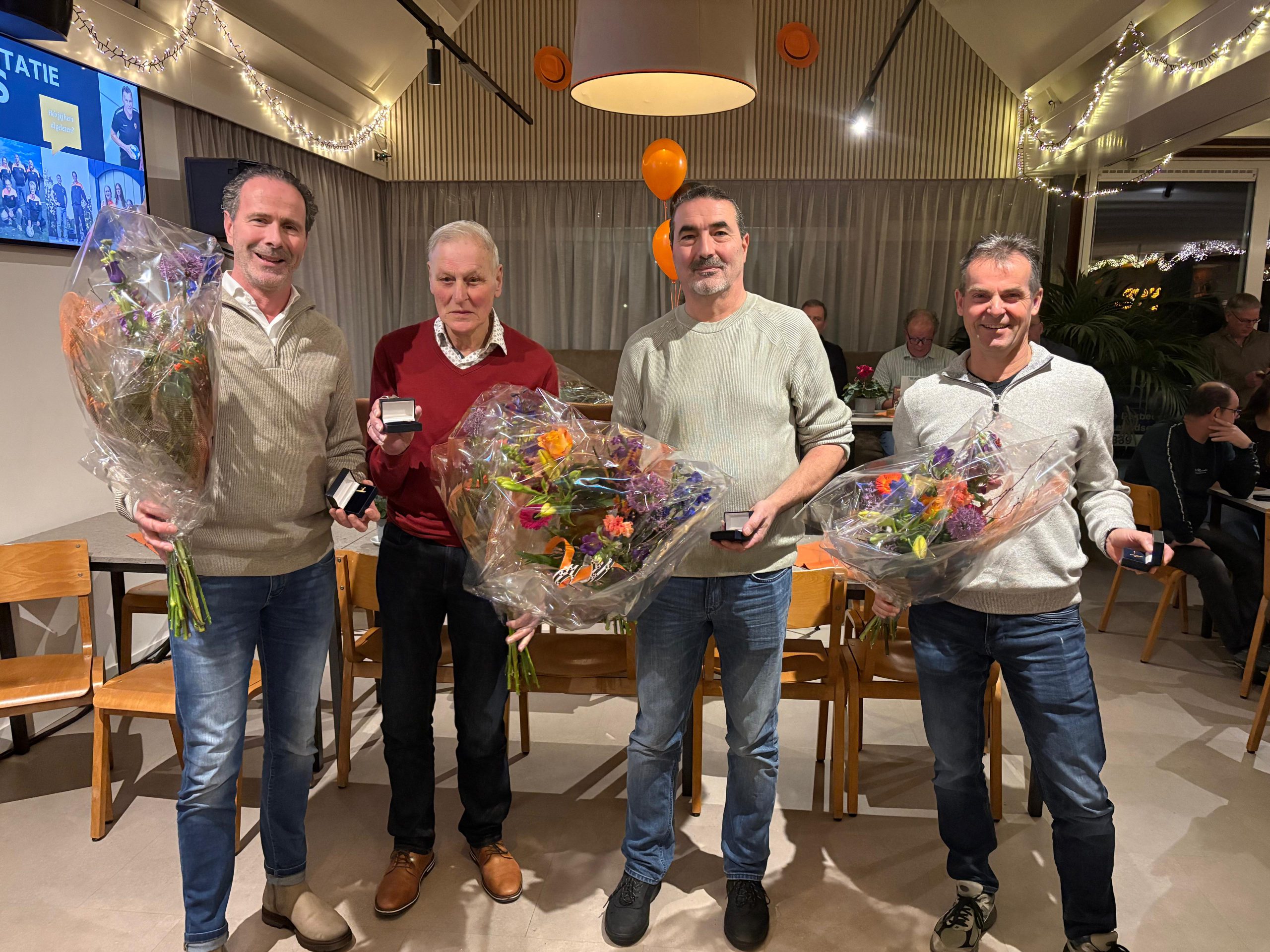 De 50-jarige jubilarissen zijn leden die voor velen geen onbekenden zijn: Eric Klein Swormink, Jan Logtenberg, Robert Poll en Jos Oosterwegel. Zij werden op een eervolle manier door Hans Deten toegesproken, ook omdat ze allemaal al jaren hun steentje bijdragen als vrijwilliger. Voor Jos was het Marchell Hoogeslag die naar voren kwam en mooie woorden sprak over zijn teamgenoot.