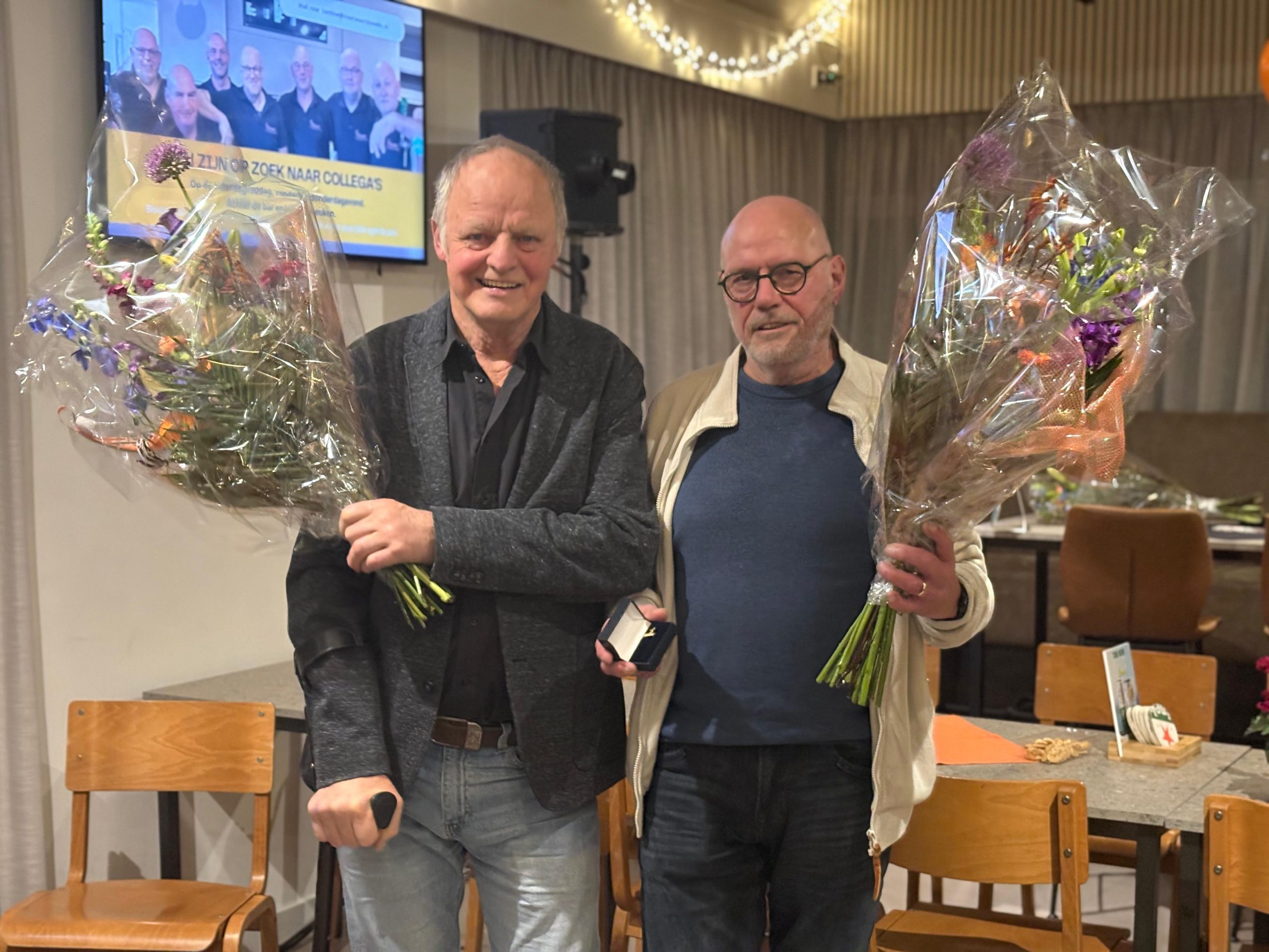 Geert van de Linde, Dick voor de Poorte werden gehuldigd voor 60 jaar lidmaatschap, waarbij Geert het natuurlijk niet kon laten om op zijn eigen ludieke wijze het woord te nemen. Martin Timmermans moest zich helaas op het laatste moment door ziekte afmelden.