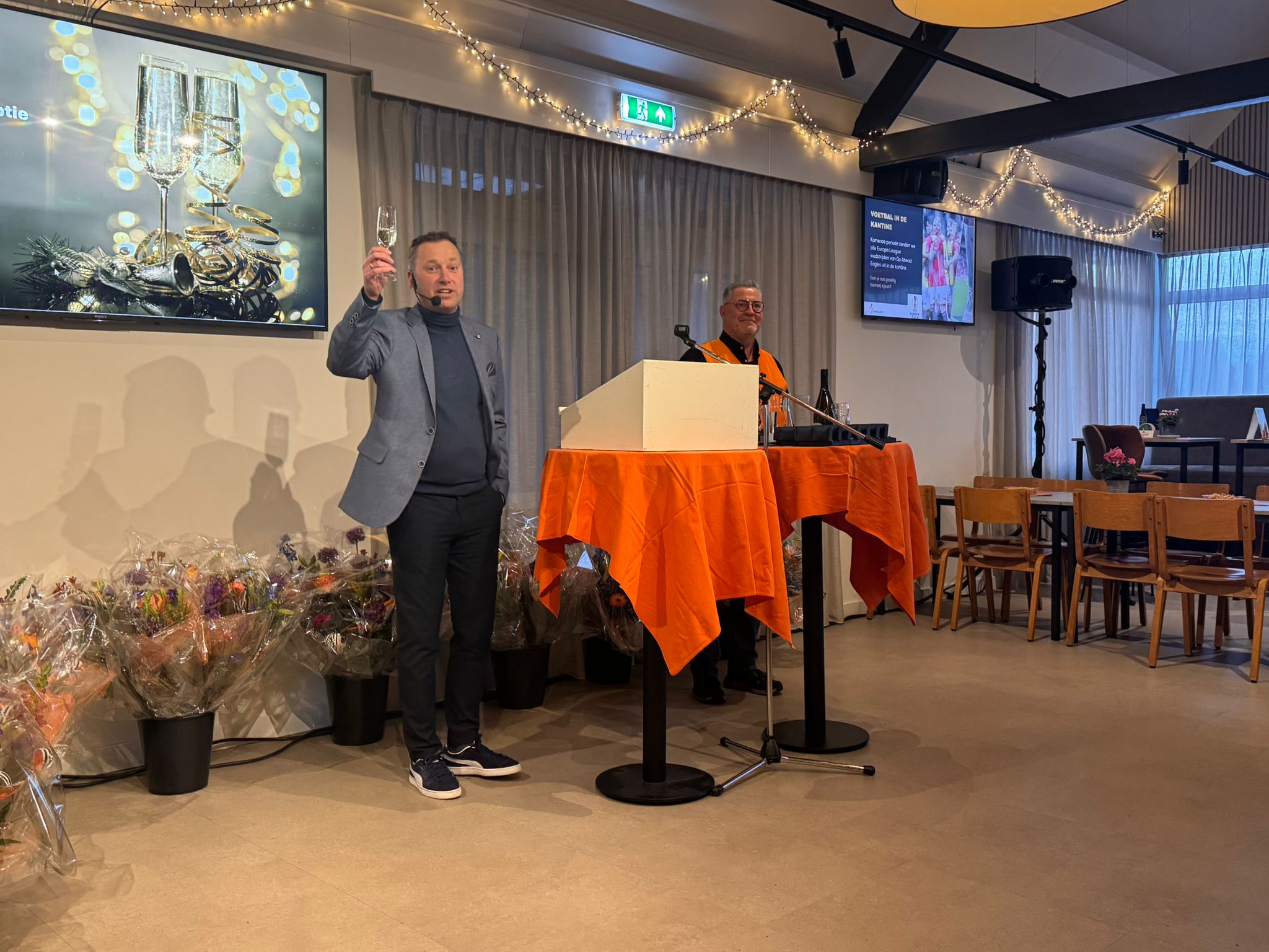 Op zaterdagmiddag 10 januari was het weer een gezellige boel bij s.v. Voorwaarts aan de Laene. Buiten was het -5, maar binnen lekker warm. Na de opening door de algemeen voorzitter, Guido Leerkes, waar hij de leden, vrijwilligers, sponsors en andere aanwezigen van harte welkom heette, vertelde hij dat we als club een belangrijke periode tegemoet gaan als het gaat om onze accommodatie. Dat vraagt om betrokkenheid van onze leden en vrijwilligers die opstaan om verder mee te bouwen aan deze fantastische club. Guido sloot af met een toost op een mooi nieuw, gezond en sportief jaar voor iedereen die Voorwaarts een warm hart toedraagt.