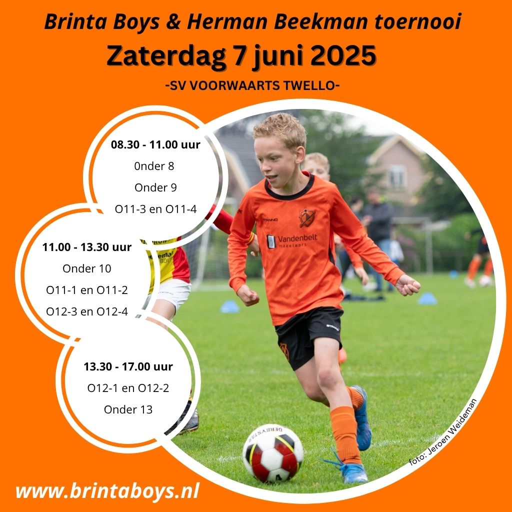 Op zaterdag 7 juni verwachten wij 120 teams, komend van Amersfoort tot uit de Achterhoek, voor ons jaarlijkse Brinta Boys en Herman Beekman toernooi!