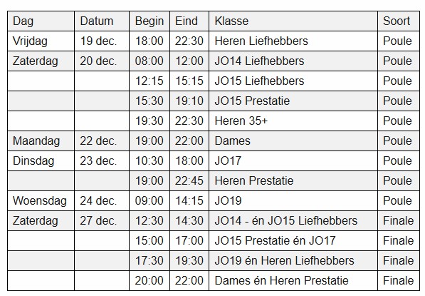 Het wedstrijdprogramma wordt uiterlijk 15 december gepubliceerd via de app Tournify.