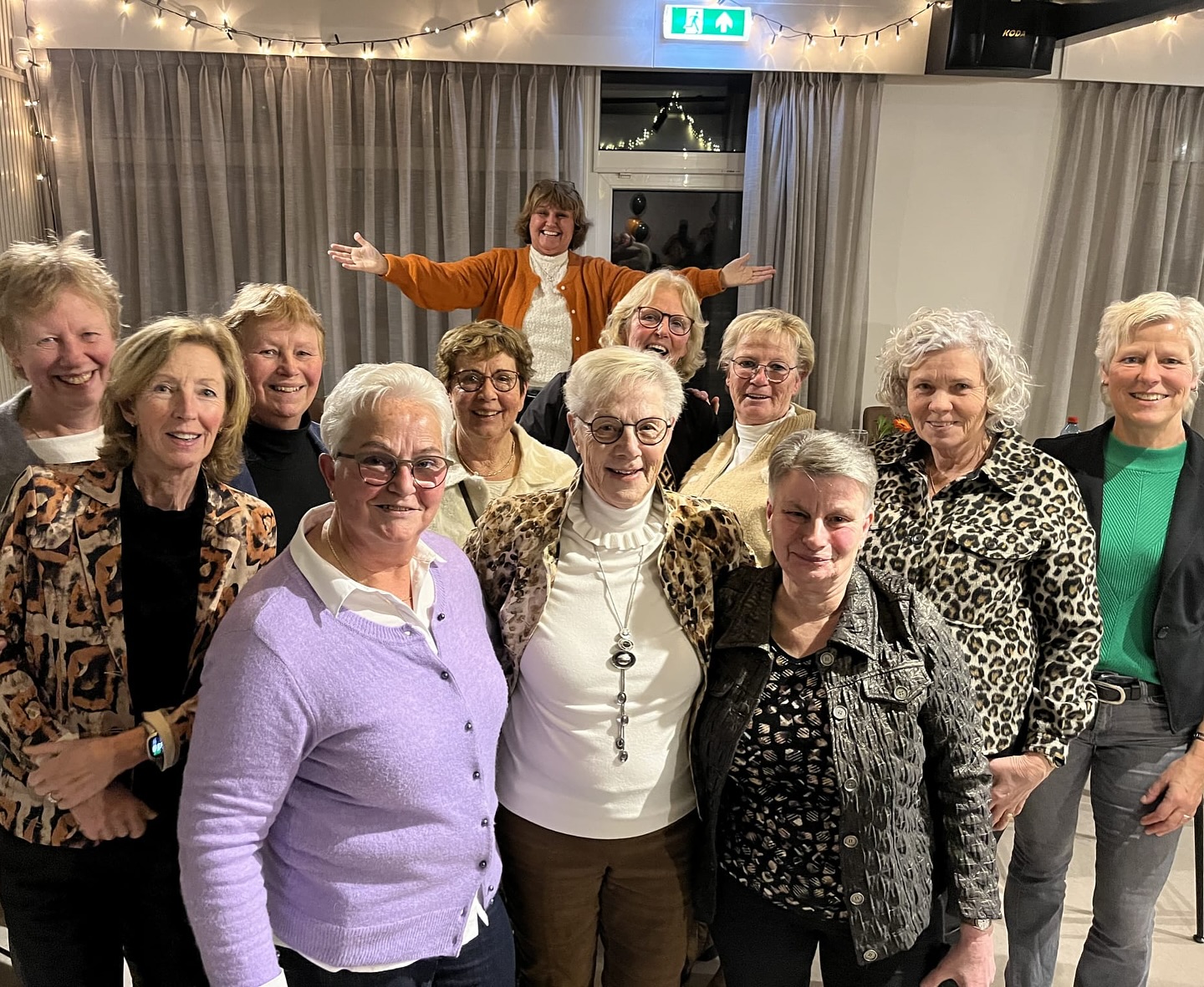 Op de groepsfoto staan de jubilarissen trots midden vooraan, omringd door de dames van de recreantengroep. Deze enthousiaste groep traint elke woensdag met veel plezier in de gymzaal aan de Bleriotstraat in Teuge.