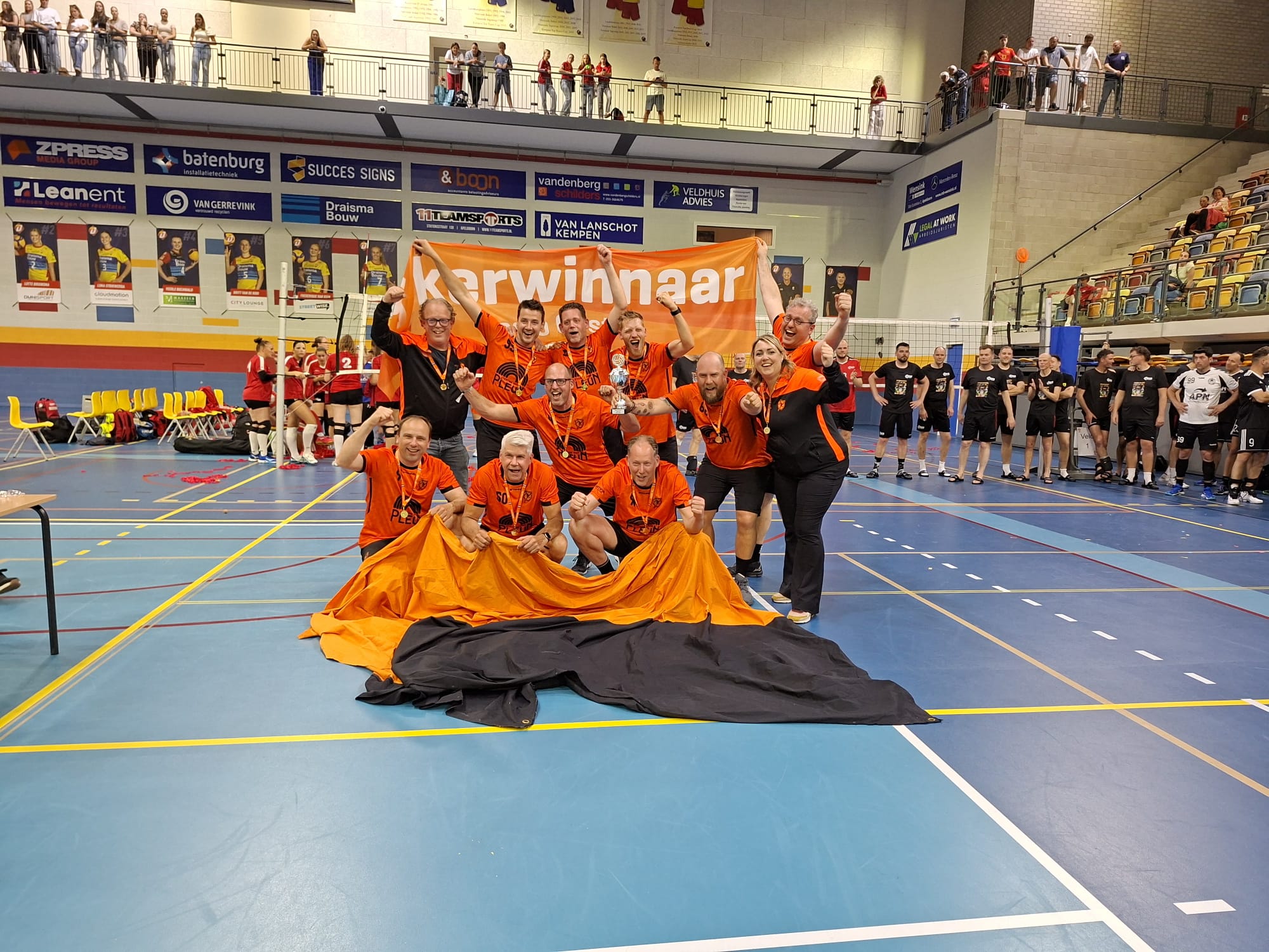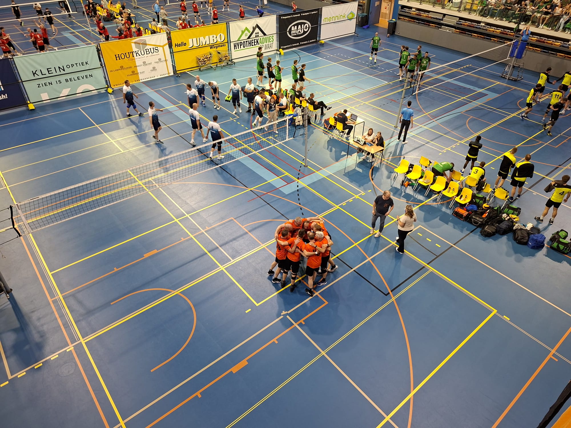 De derde set kende wat laatste loodjes en weer kwam BVC op een 1-0 voorsprong. Maar verder in de set was er wederom geen achterstand. Edwin sloeg een aantal keren raak en ook Bert raakte sporadisch een bal goed. Op 06-11 was het alarm voor BVC en namen ze een time-out. Hier en daar maakten we wat foutjes met ballen in het net, maar die konden we ons permitteren. Het telbord gaf 10-15 aan en de bekerwinst was nu binnen handbereik. In deze slotfase werd er nog meerdere keren gewisseld, waardoor iedereen heeft gespeeld. Coach Kim en assistent Ralph wisten het juiste team te smeden en hiermee de prijs te pakken. De laatste set eindigde in 15-25 en daarmee was de beker binnen!